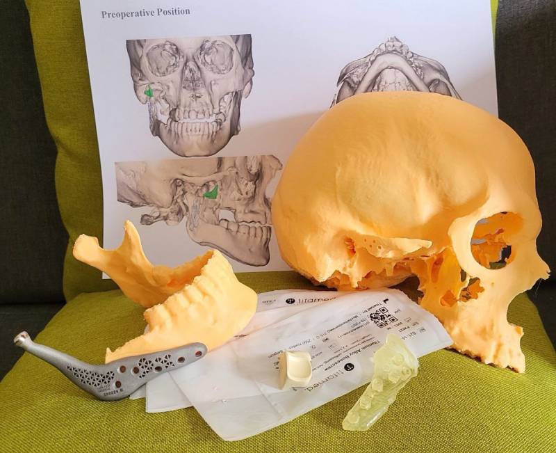 Протез, який замінить пацієнту суглобову ямку, яка знаходиться на скроневій кістці, друкується на виробництві у Києві. Саме він допоможе відновити всі функції й людина зможе нормально їсти й розмовляти. Реабілітація в середньому займає два-три тижні, хоча, як наголошує лікар, всі випадки індивідуальні.