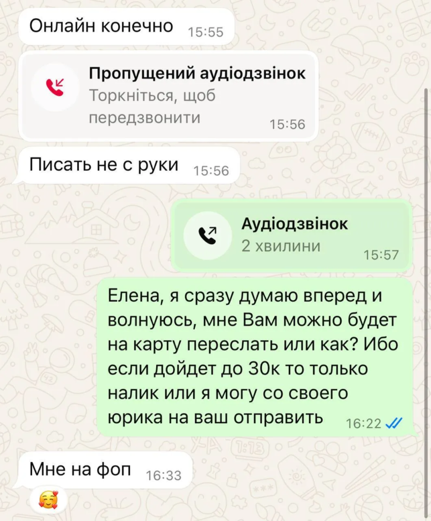 Журналісти зв’язались з жінкою, представившись потенційною клієнткою від тієї самої “Єлєни Михайлівни”. Наш запит – “подивитись”, чи зраджує чоловік – успішний харківський бізнесмен. Олена люб’язно погодилася й одразу попередила, чи влаштує нас прайс у $1000 за розклад Таро. “Вам комфортно?” – уточнила жінка після озвучення вартості.