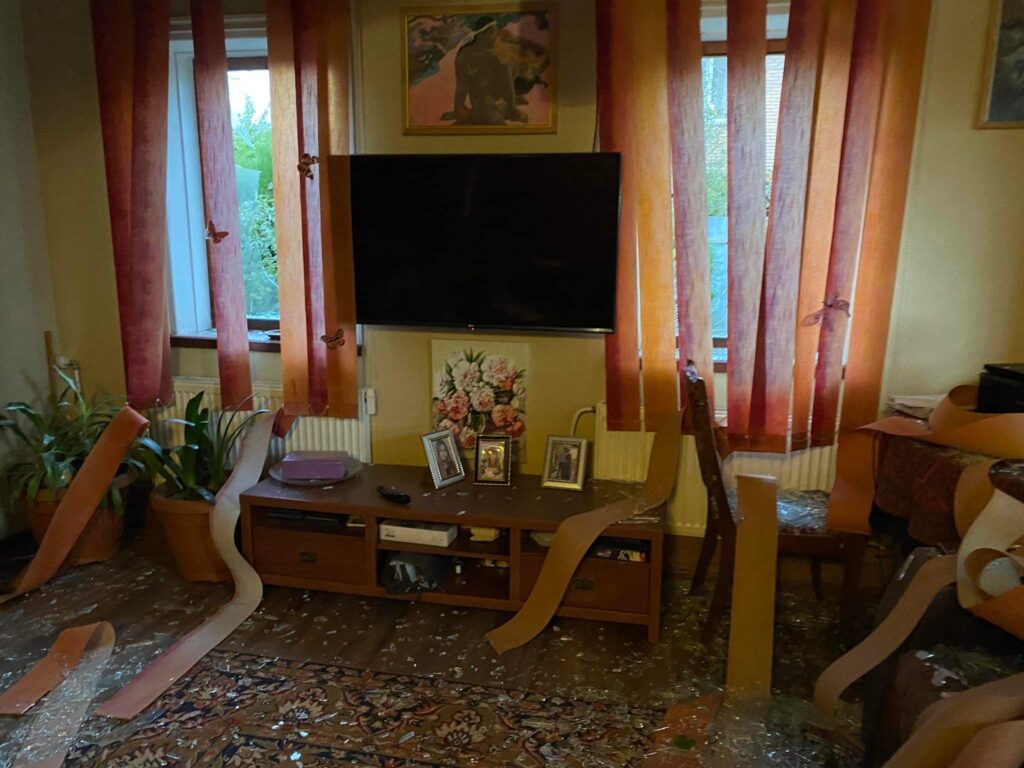 Жителька одного з сіл Черкаського району, де 10 жовтня збили ракету, поділилася світлинами свого зруйнованого дому й подвір‘я.
