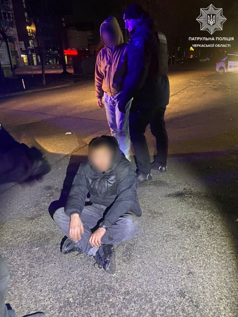 Отримавши орієнтування, патрульні розпочали пошуки. На вулиці Смілянській екіпаж патрульних роти ТОР виявив схожих чоловіків, а заявник впізнав у них нападників..