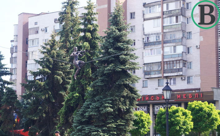 У Черкасах біля філармонії вже встановлюють балансуючу фігуру – скрипальку.