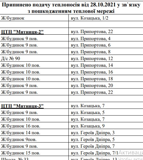 Наразі працівники ТЕЦ на тепловій мережі проводять ремонтно-відновлювальні роботи. Поновити забезпечення будинків теплом і гарячою водою за вказаними адресами планують 01 листопада 2021р.