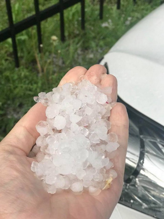 Сьогодні Черкасами знову прокотилася негода. Сильний дощ супроводжувався градом.