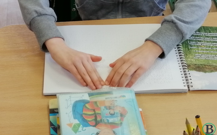 – Писати шрифтом Брайля набагато складніше, ніж читати. Я маю видрукувати букву в дзеркальному відображені, щоб потім могла все прочитати, – ділиться своїм досвідом дівчинка й з готовністю друкує за допомогою спеціальної дощечки фразу і математичний приклад, який задає вчителька. Також вона додає: «Дуже зручно, що тепер кожен учень може мати свій екземпляр методичного матеріалу, це полегшує процес навчання».