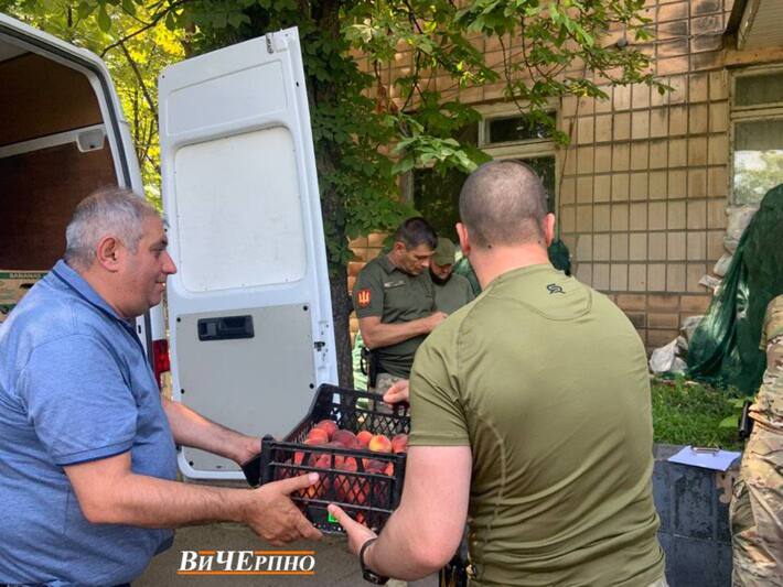 Разом з автомобілем для українських захисників черкаські волонтери передали величезну кількість овочів та фруктів (кабачки, огірки, сливи та персики) для воїнів 156 окремої бригади, солдатів територіальної оборони, а також для Черкаської обласної лікарні та Третьої черкаської міської лікарні.