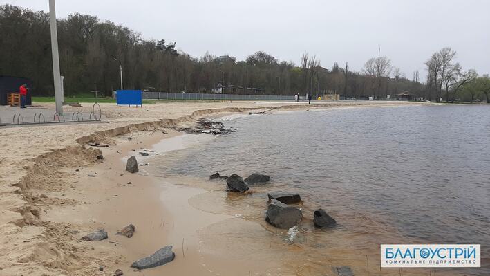 Вже зараз підмито пляжні парасолі, будиночки рятувальних постів, місцями навіть доріжки, засмічений сухим очеретом берег, знесені у воду дерева та гілки, які потім опиняться на березі, місцями розмито берег.