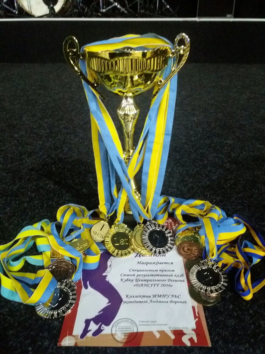 Наші талановиті танцівники отримали 80 нагород, 30 з яких– «золоті», тож у підсумку «Імпульс» виборов Кубок Центрального регіону. Крім того, дві учасниці колективу відзначені спеціальними призами: Шептицька Софія як найяскравіший танцівник, а Різак Ксенія як найрезультативніший.