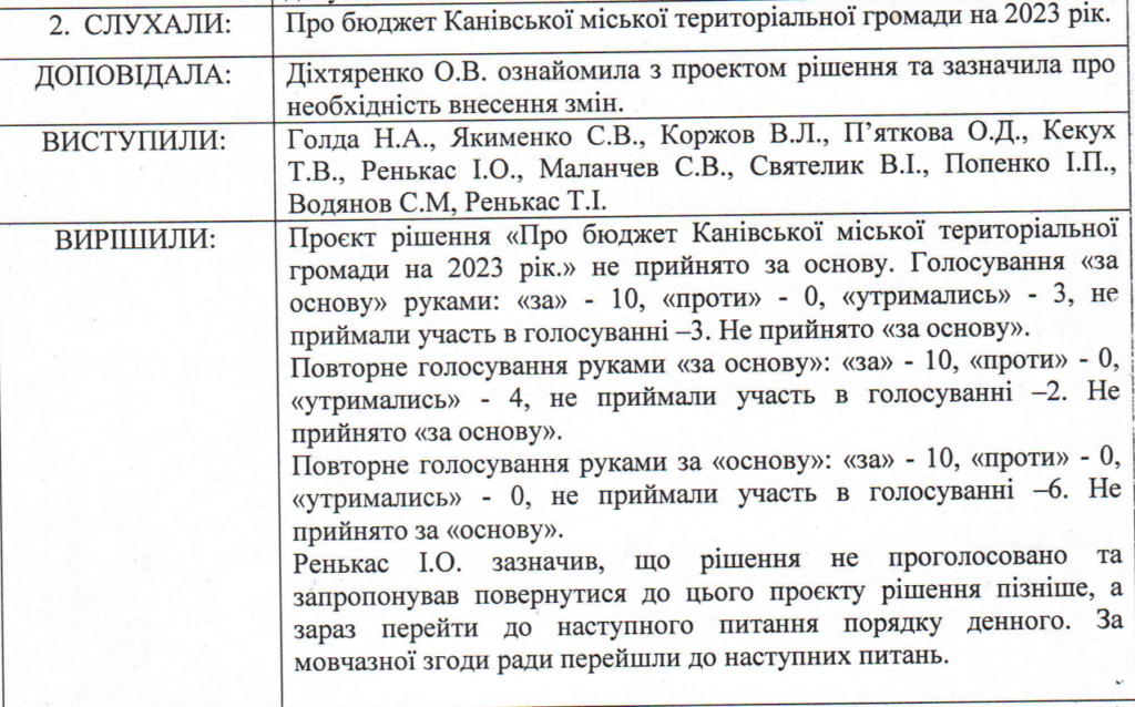 Ми звернулися з інформаційним запитом до Канівської міської ради, аби дізнатися, чи було розглянуте те питання, оскільки на сайті міськради не знайшли відповідної інформації. За інформацією, яка міститься у витягу з протоколу, депутати дійсно кілька разів голосували “за основу”, однак рішення не підтримали. Пізніше пресслужба Канівської міської ради надала покликання на старий сайт, в якому розміщені всі матеріали по сесіях. Ознайомитися з ним можна ТУТ.