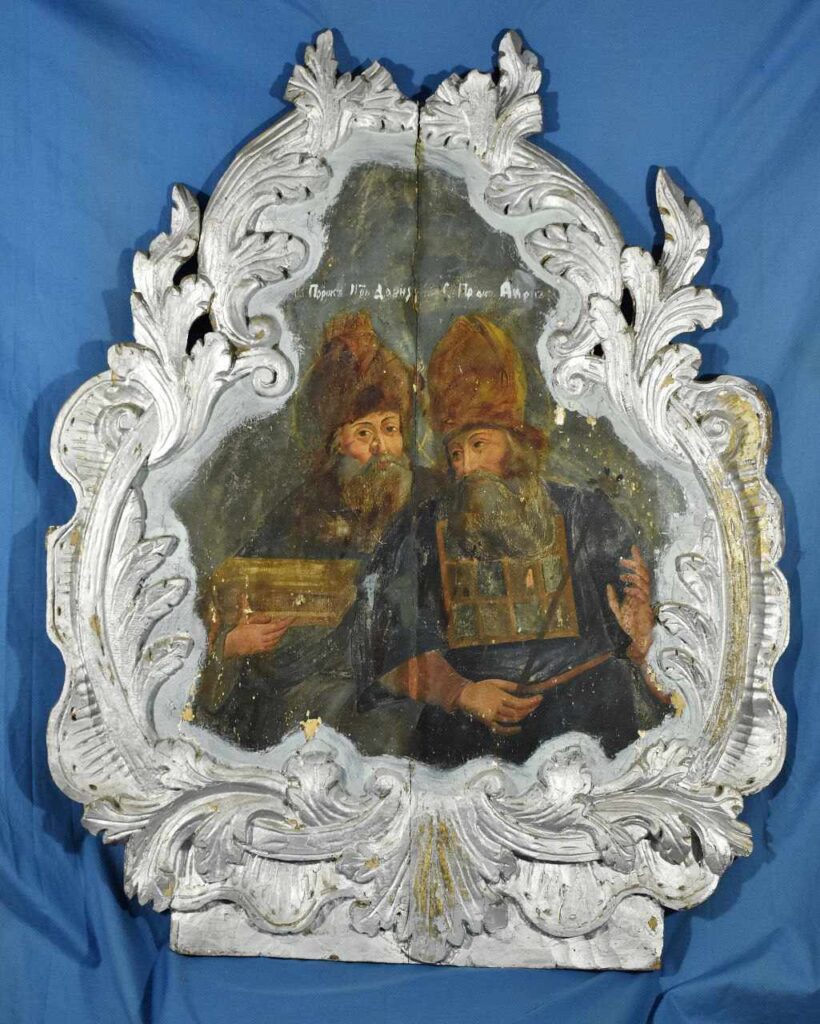 Нещодавно до Черкаського обласного краєзнавчого музею, після майже року реставраційних робіт, повернувся фрагмент іконостаса з невідомої церкви на Чигиринщині із зображенням двох святих.