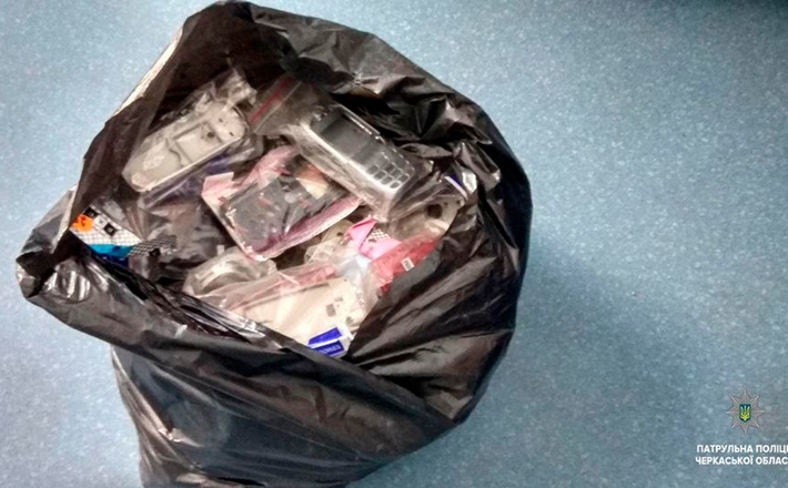 Патрульні прибувши за викликом одразу забезпечили охорону місця події. Також працювали слідчі, працівники ДСНС та вибухотехніки. У пакетах виявили запчастини до мобільних телефонів, дроти і м`ясо, ймовірно, кроля.