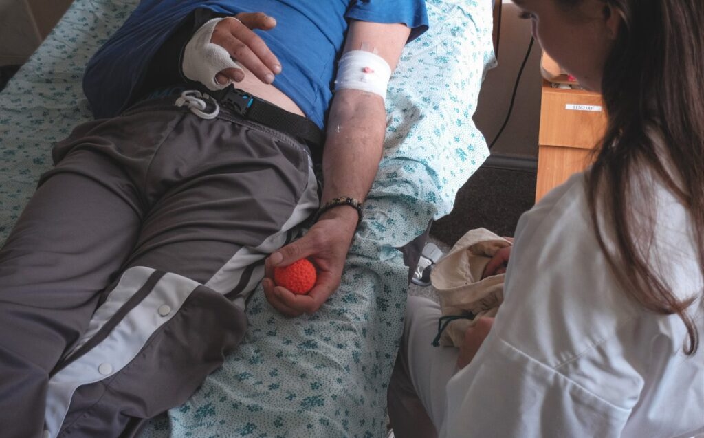 “Ті кілька моментів, коли він міг тримати щось без різкого болю, з почуттям впевненості, були справжнім досягненням, і ми святкували це, – каже Тараненко. – Ми показуємо пацієнтам, що їх стан може покращуватися. Це потужний стимул для одужання”.