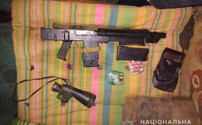 Під час санкціонованого обшуку правоохоронці виявили тактичний дробовик кустарного виробництва, заготовку під вогнепальну нарізну зброю, дві банки пороха та інструмент для виготовлення зброї. Речові докази направлено на проведення відповідних експертиз.