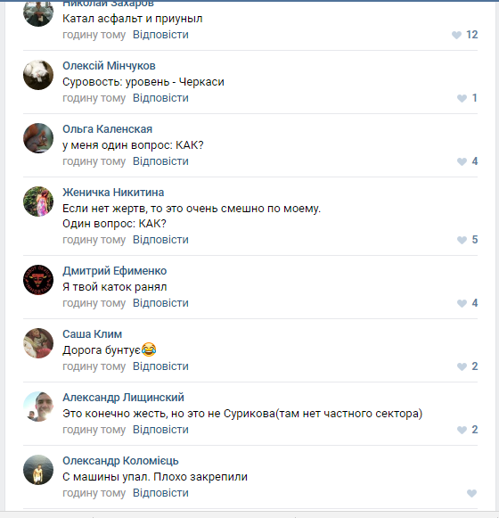 Про це інформують “Типичные Черкассы“. Пригода сталася удень 16 листопада поблизу військової частини. В соцмережі люди активно обговорюють, як зумів впасти каток.