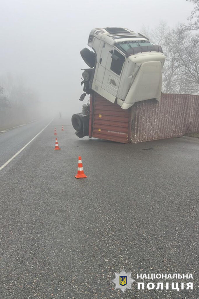 На автодорозі Н-16 біля міста Звенигородка 57-річний водій автомобіля “DAF” через туман втратив орієнтир і не впорався з керуванням.