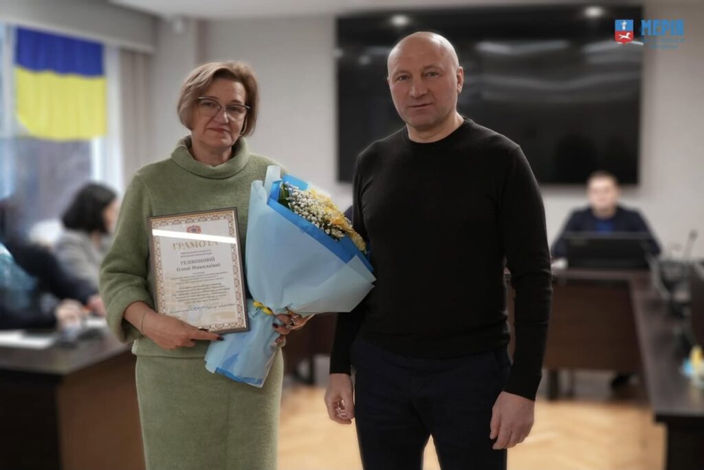 Зокрема, грамоту виконавчого комітету міський голова вручив волонтерці Олені Геліконовій за її активну громадянську позицію та благодійну діяльність. Попри те, що на війні втратила сина та зятя, вона щодня допомагає захисникам України. Олена є співзасновницею кількох організацій, що підтримують військових.