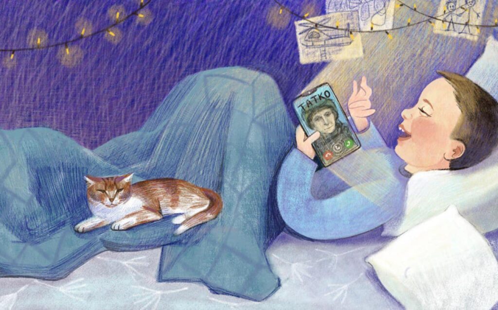 “У жовтні 2023 року ми приїхали в місто, де чоловік проходив службу. Я читала там книгу про наслідки Другої світової війни. І в той момент стався приліт поблизу нас. Тоді я усвідомила, що це унікальний досвід, щоб вустами дитини розповісти, що таке війна, чому тато нас захищає, хто такі військові”, — розповідає Аліна Отземко.