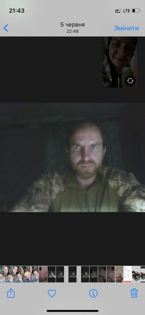 “Останній тиждень ми мало спілкувалися, адже почалися активні бойові дії на тій ділянці, було багато поранених і загиблих. 6 червня я подзвонила вранці, о 8:29. Він відповів із ноутбука — заповнював документи. Сказав, що зайнятий, і ми швидко попрощалися, сказали один одному: “Люблю тебе”. Це була наша остання розмова. Увечері він уже не взяв слухавку. Побратими казали, що він на позиції, що буде пізніше. Але вранці я відчувала тривогу, не могла ні на чому зосередитися. Випила заспокійливого і лягла спати. А потім я отримала дзвінок із невідомого номеру”.