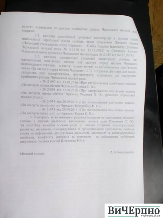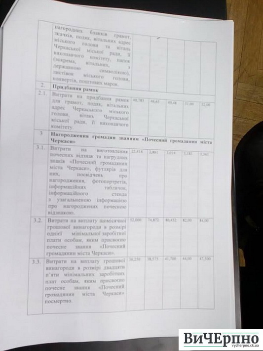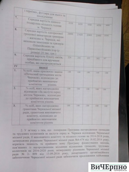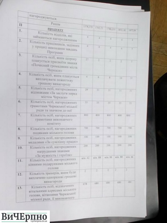 Не частіше, ніж раз на каденцію здійснювати нагородження відзнакою Почесний громадянин міста Черкаси, а також визначити грошову винагороду у розмірі 20 тис. грн для тренерів, які виховали Олімпійських чемпіонів. Такі зміни були внесені до Програми нагороджень ЧМР.