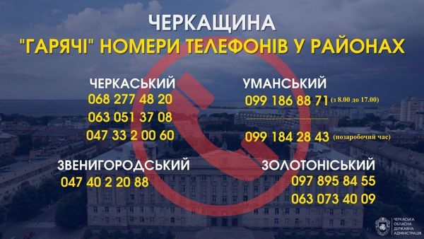 - Працюють гарячі лінії, за якими жителі Умані можуть звернутися по допомогу