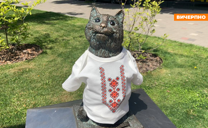 Цього дня скульптуру Щедрого кота в черкаському сквері “Юність” також одягнули у вишиванку. Таким чином і бронзова тваринка, що збирає кошти для безпритульних чотирилапих, долучилася до святкування.