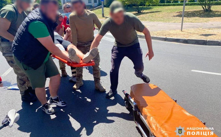 Тим часом напарники забезпечили охорону місця події та рух автомобілів. Поліцейські разом з медиками занесли потерпілого до карети швидкої допомоги. Його шпиталізували до лікарні.
