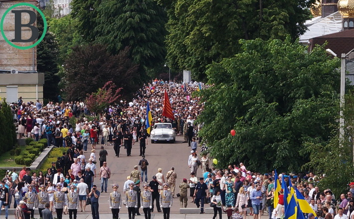 Після мітингу хода рушила від Соборної площі до Пагорба Слави, де тисячі черкасців вшанували полеглих у боях земляків, поклавши квіти до стели.