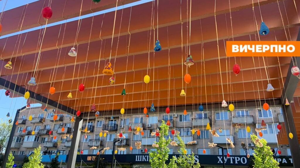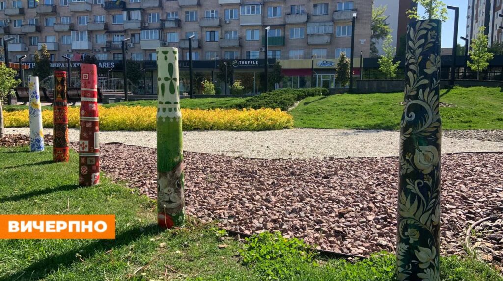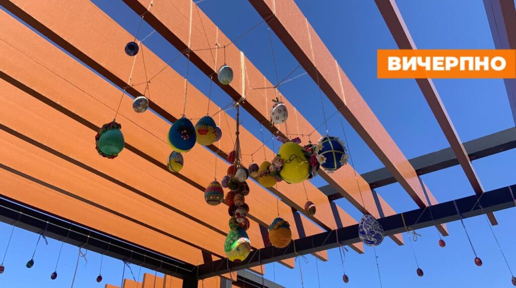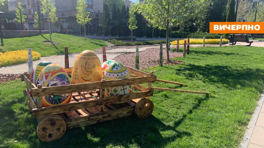 Цього року для звичних вже великих писанок працівники “Дирекції парків” з дерева виготовили спеціальні возики, встановивши їх на зеленому газоні, щоб розмальовані дитячими руками шедеври заграли зовсім новими барвами.