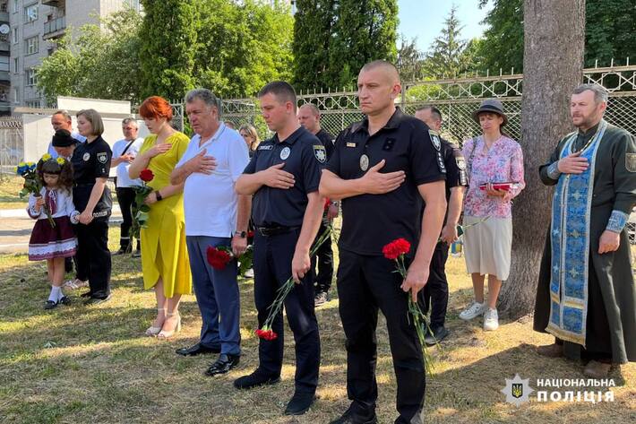 У Монастирищі відкрили меморіальну дошку на честь загиблого поліцейського Вадима Періжка.