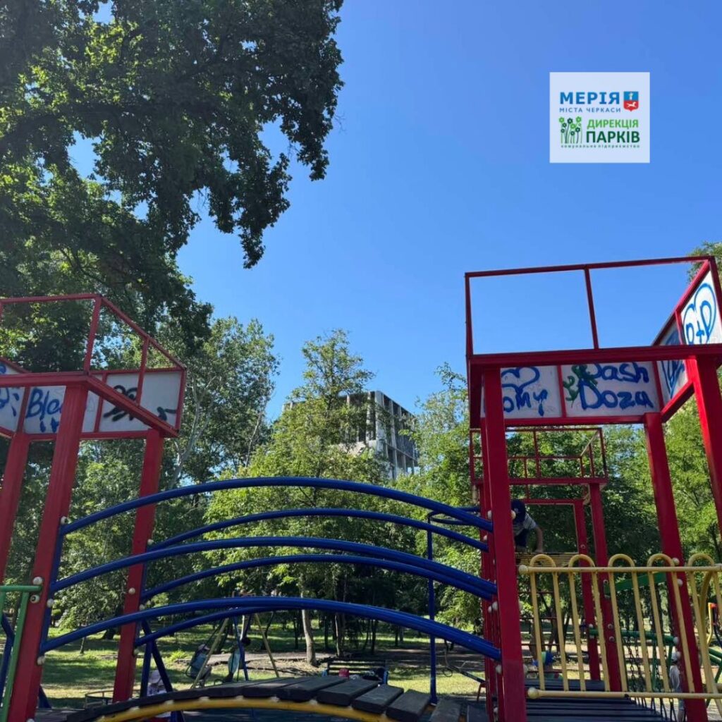 У Соборному парку невідомі особи обмалювали дитячий майданчик та інші об’єкти паркової інфраструктури.
