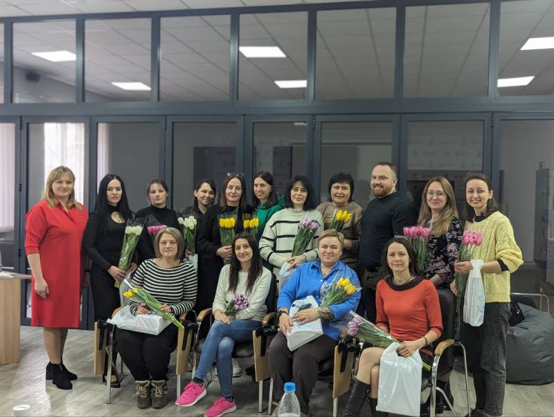 Жінки, присутні на заході, отримали не тільки позитивні емоції, але й квіти.