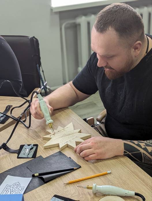 Для сімей загиблих на війні захисників та ветеранів у просторі “ВетеранПро” провели майстер-клас з випалювання по дереву.