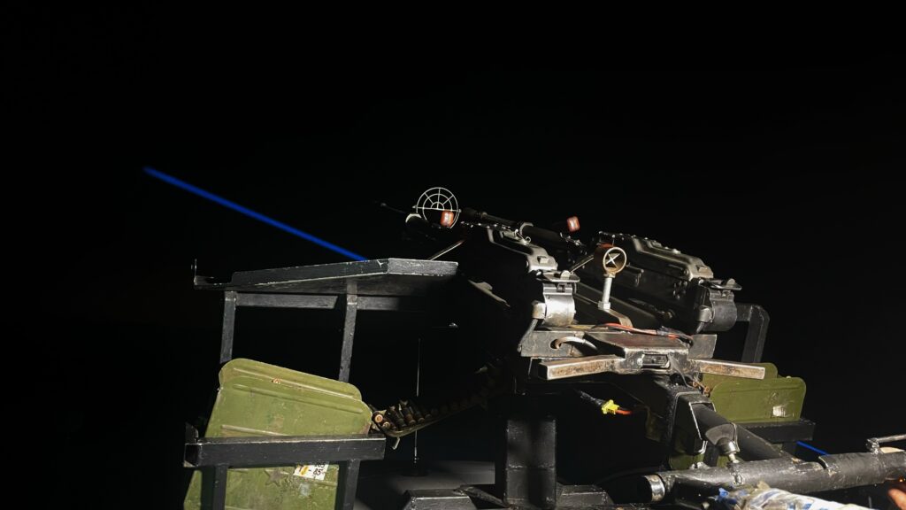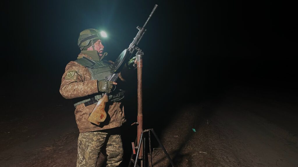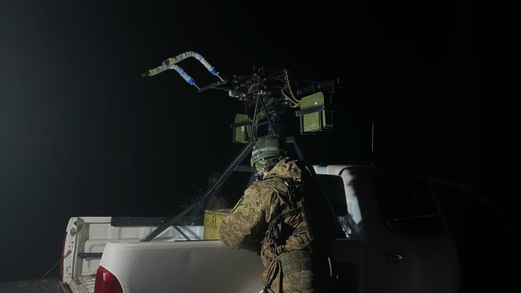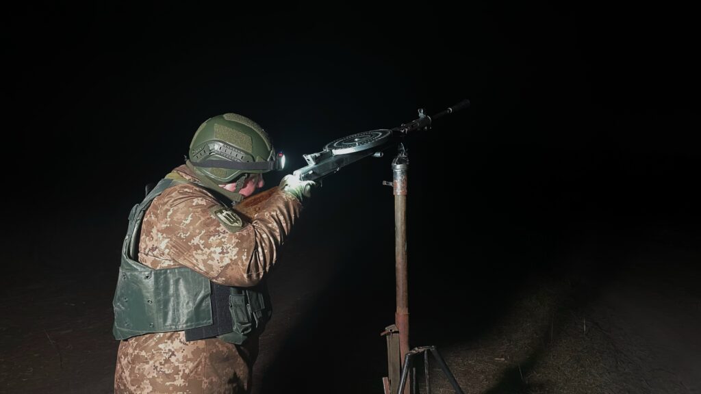 У мобільній вогневій групі є два кулемети. Один із них у підпорядкуванні Валерія Вікторовича. Коли ворожий БпЛА виходить на позицію, а навідник фіксує ціль, — Валерій Данилевський відкриває вогонь на ураження. Якщо все добре — безпілотник далі не рухається, або ж летить недалеко.