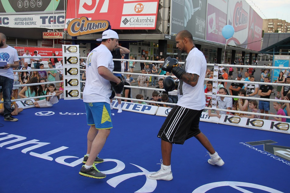 У рамках вечора боксу, що відбудеться 13 червня в СК «Будівельник», боксери влаштували відкрите тренування на одній з центральних площ міста.