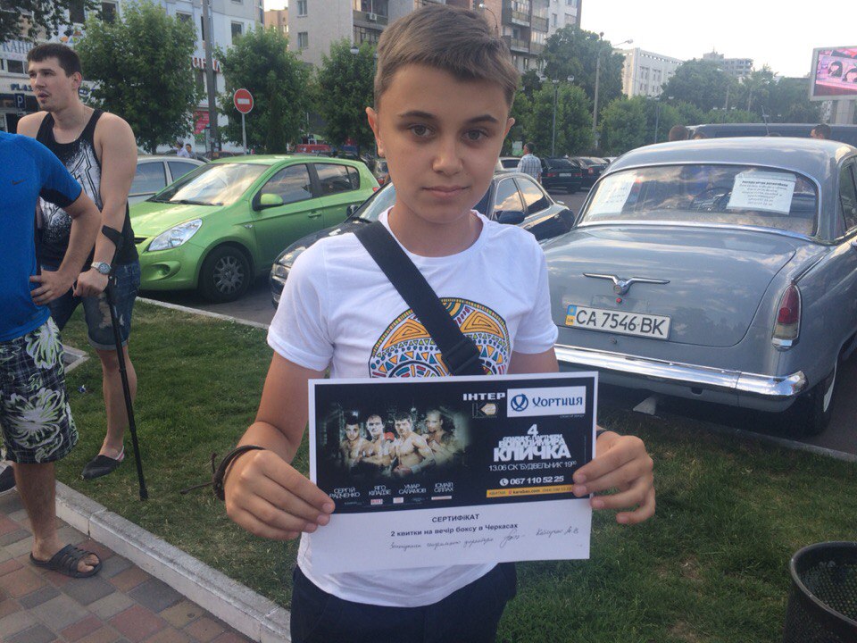 Всі присутні могли взяти участь у розіграші білетів на вечір боксу. Для цього лише необхідно було дати правильну відповідь на декілька запитань. Всього ж розіграли 10 білетів.