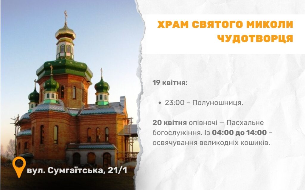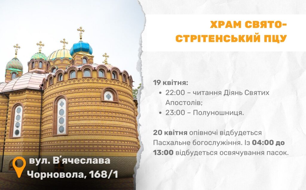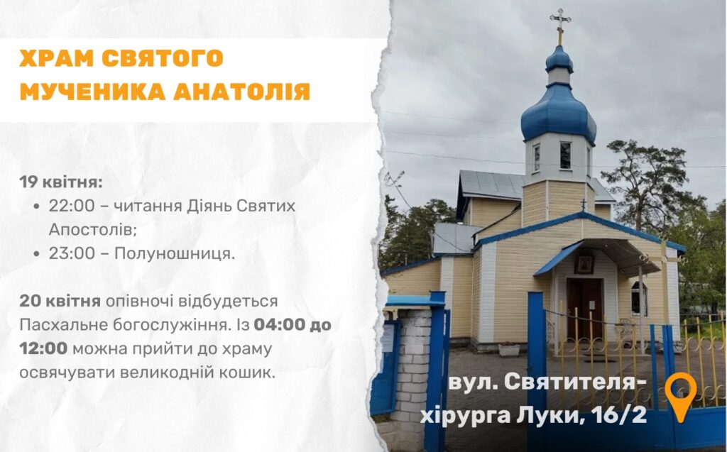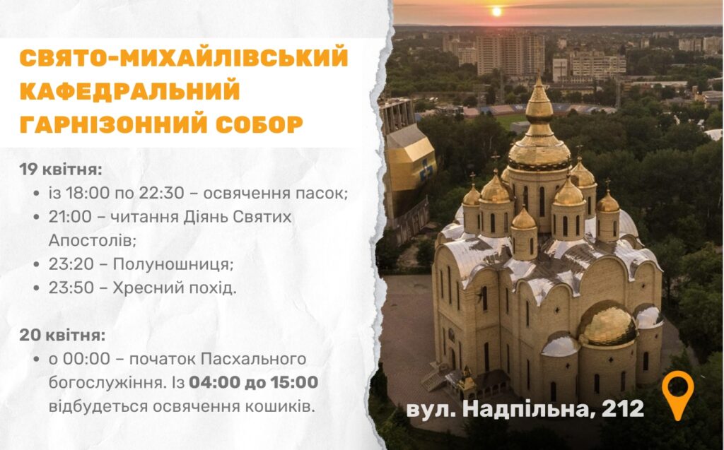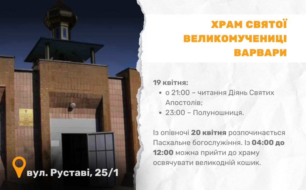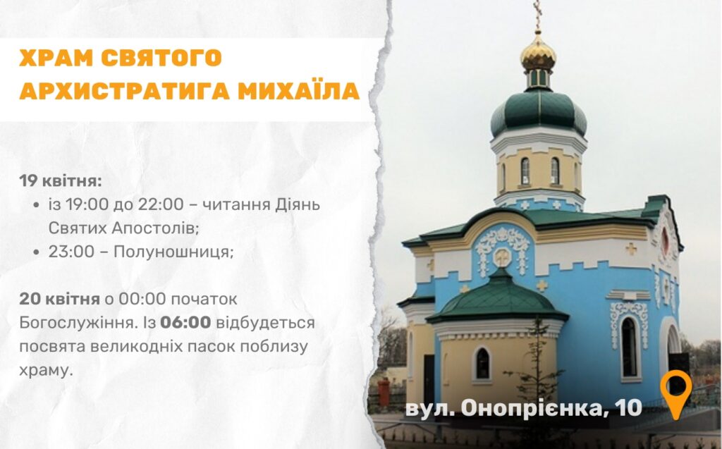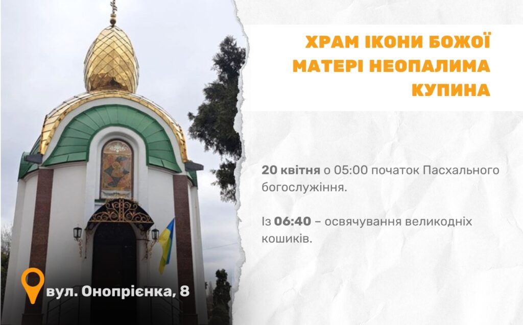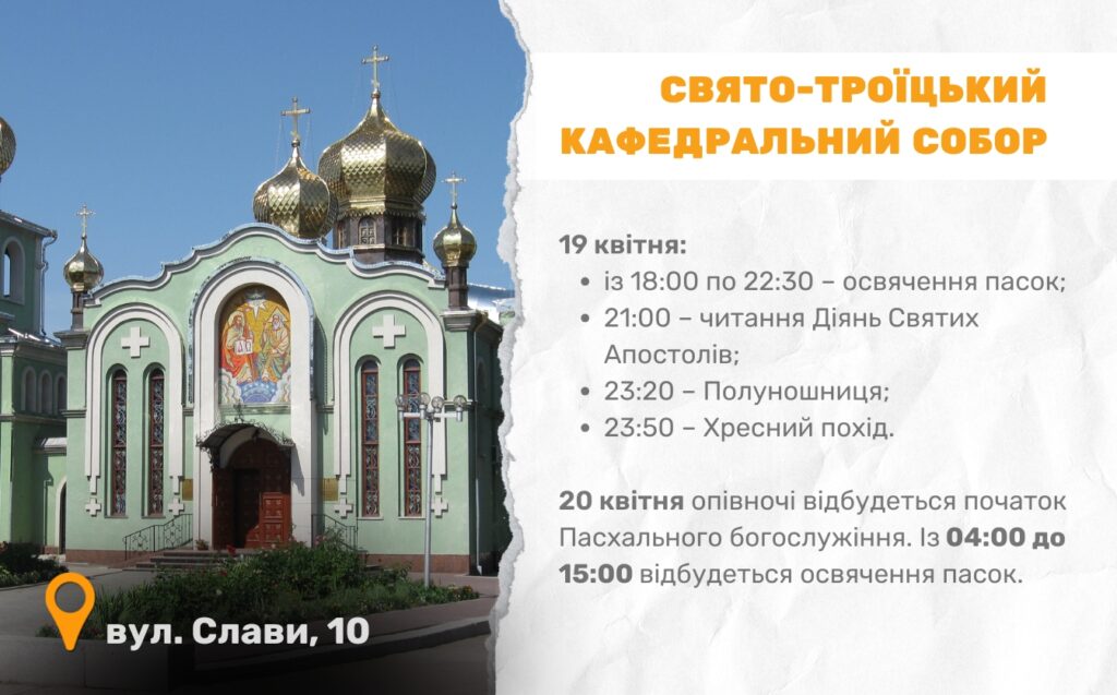 Цьогоріч Великдень в Україні відзначають 20 квітня. У Черкасах, зокрема, 13 храмів Православної церкви України долучаться до святкування і проведуть урочисті богослужіння. Служби проходитимуть у ніч з суботи на неділю.