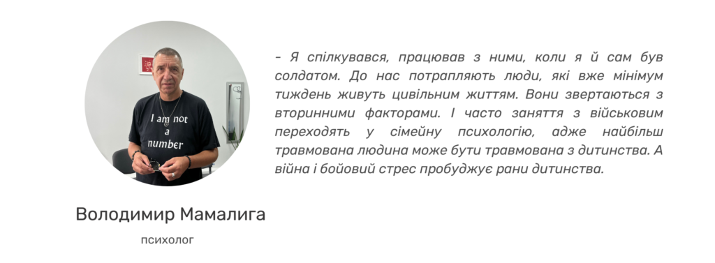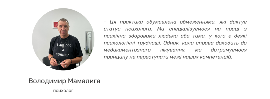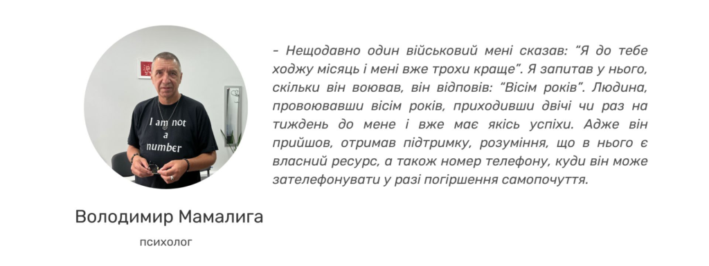 У центрі, за словами чоловіка, головний підхід полягає в тому, щоб надавати належну підтримку і допомогу військовим. Однак, у випадках, коли такої підтримки недостатньо, пацієнта переадресовують до лікарів-психіатрів.