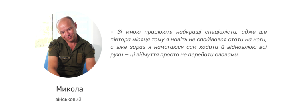 Наразі черкаські реабілітологи говорять про стрімке покращення стану чоловіка, а сам Микола сподівається найближчим часом повернутися до своїх побратимів та знову стати на захист України.