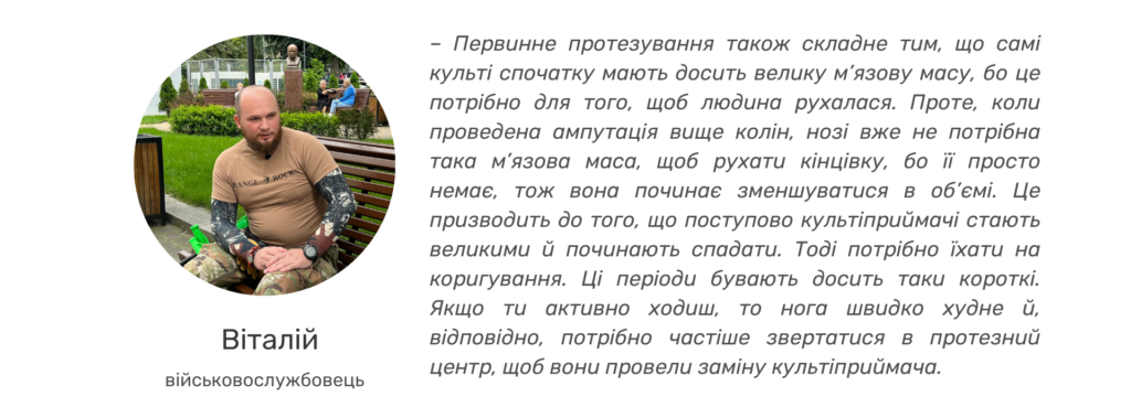 Процес протезування у Віталія зайняв орієнтовно 6-7 місяців, оскільки воїн мав ще й опікові поранення, які досить довго заживали.