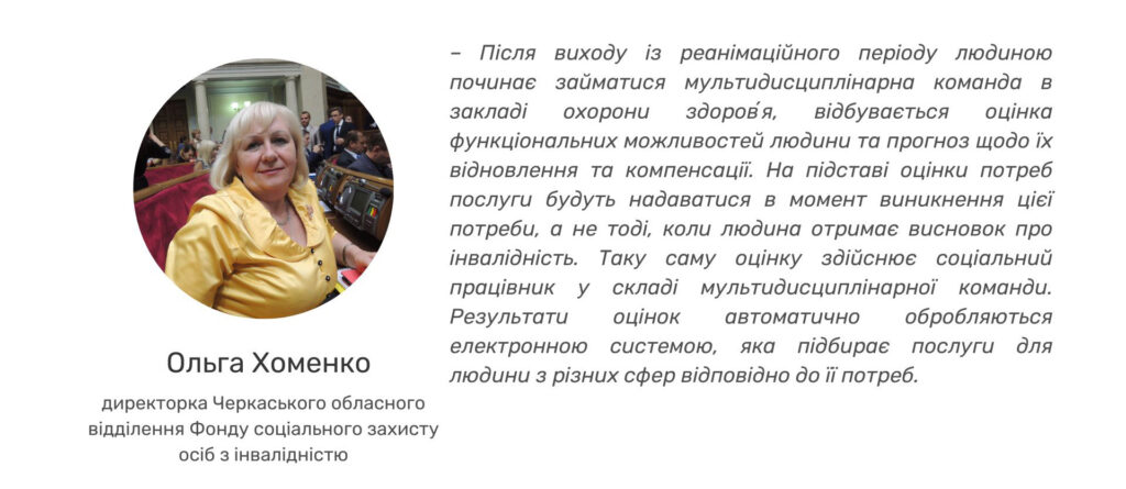“Звикнути до втрати власної кінцівки буває значно складніше, аніж навчитися користуватися новою”, — стверджує директорка Черкаського обласного відділення Фонду соціального захисту осіб з інвалідністю Ольга Хоменко.