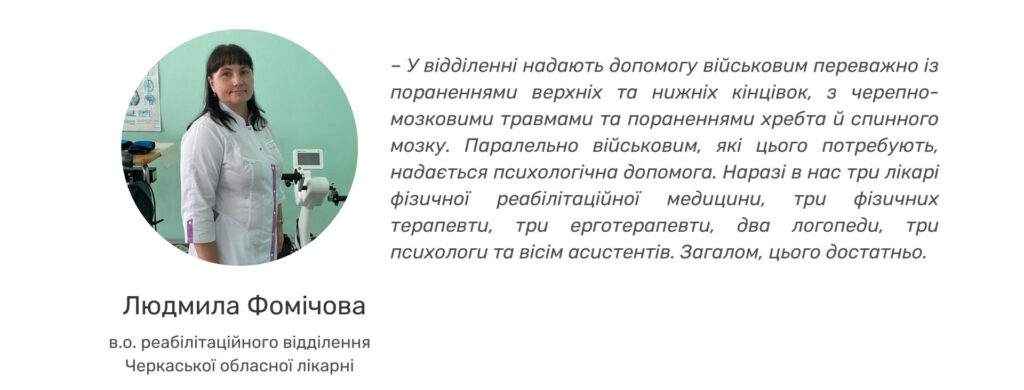 Починаючи ще з 2014 року, при медичних закладах Черкащини почали все більше приділяти уваги саме реабілітації військовослужбовців. На жаль, після повномасштабного вторгнення, відсоток військових в реабілітаційних відділеннях суттєво збільшився.