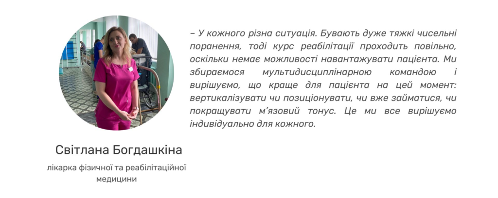 Багато також залежить від характеру поранення, розповідає Світлана Богдашкіна, лікарка фізичної та реабілітаційної медицини.