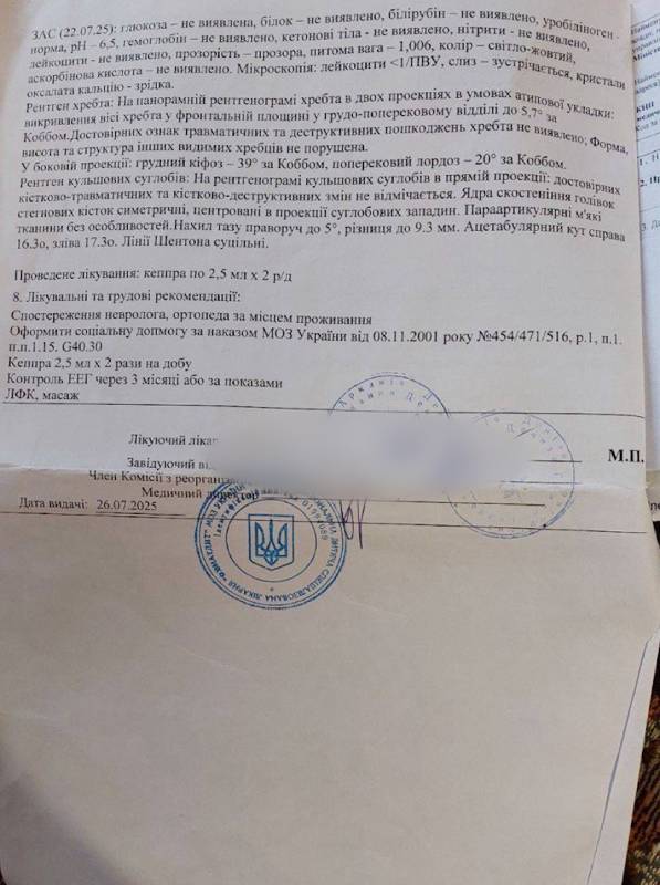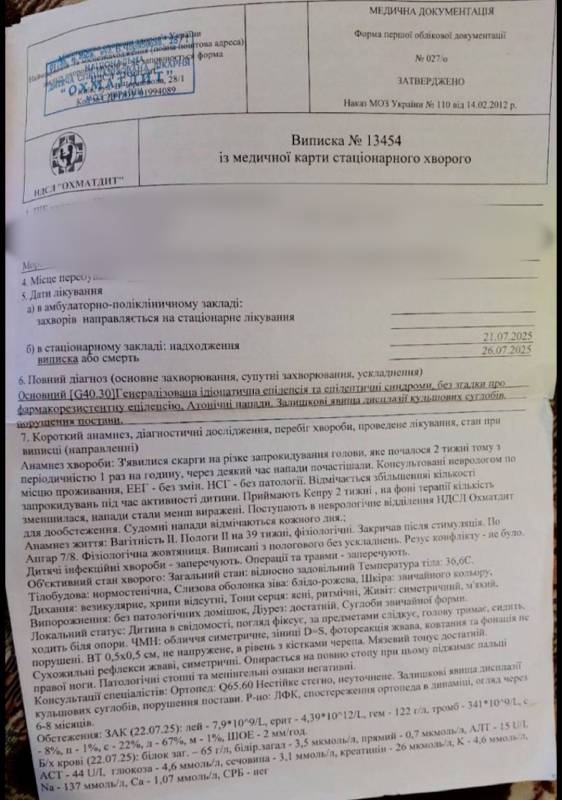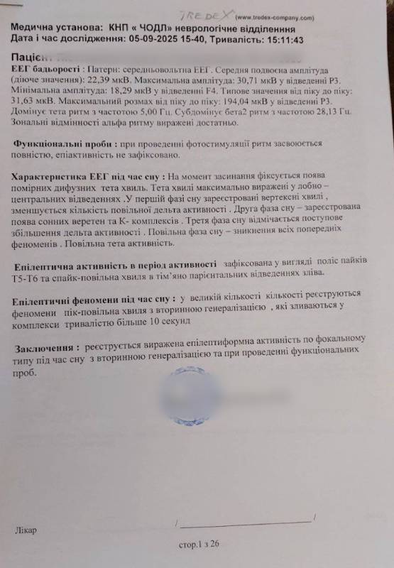 “Нам знову зробили енцефалограму. І хочу сказати, що у 2024 році, що у 2025 ні за цю процедуру, на за інші обстеження з нас кошти не брали. І вже під час виписки нам лікар сказав, щоб ми звернулися за місцем проживання в ЛКК, можливо, нам призначать соціальну допомогу”.