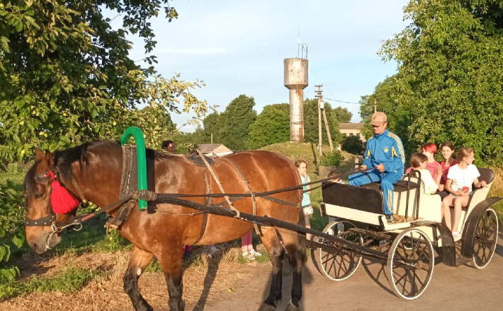 “У нас в школі є свій ансамбль, проте діти мають початкові навички гри на музичних інструментах. До нас приїхали діти з міст, які займалися понад шість років музикою, тому таким чином вони допомагали нашій малечі покращити свої навички, — розповіла директорка ліцею Наталія Канюка, — дітям дуже сподобався наш інтерактив, бо ми організували багато квестів, займалися гончарством, робили гобелени з трави, зранку ходили босими, діти каталися на конях.”